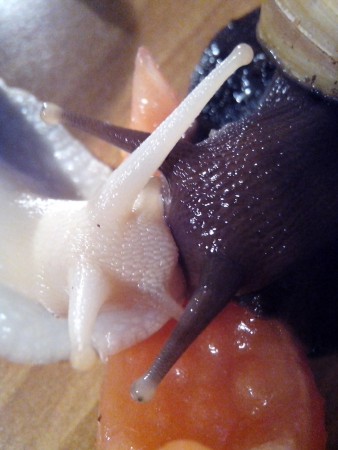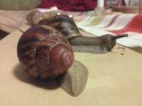 V roce 2010 mi mamka přivezla mé první dva šneky (Lissachatina fulica hamillei var. rodatzi) vylíhnuté 2/2010 od její známé. Nikdy dřív jsem je neviděla a netrvalo dlouho, aby stali se mými mazlíčky. Dostali nejprve jedno společné jmého Herbert a po pár měsících, kdy jsem se je naučila rozeznat, jsem jméno rozdělila a měla jsem Herba a Berta. Mnohokrát jsem od nich měla vejce a mnohokrát jsem jim z nich dělala kašičky (o odchovu jsem nevěděla nic), jen jednou jsem vejce přehlédla, v roce 2014, a vylíhla se mi mláďata. Z tech mi na krku zůstal jeden šnek, Sayuri. Ten samý rok se mi v noci ve 4 ráno sesypala knihovna, při té velké ráně jsem nejdřív vůbec nechtěla vstávat, ale nedalo mi to a rozsvítila jsem. Hodně jsem se viděsila, protože mi knihy napadly přímo do ubikace s Herbem a Bertem. Hned jsem šla knihy vyndávat, prvního jsem našla Herba, kniha spadla přímo na jeho uitu a rozbila, opatrně jsem ho vyndala a dál vybírala knihy. Pak jsem našla Berta, měl štěstí, byl přesně mezi dvěma knihama. Vzala jsem ho také ven a pustila se do zpevnění Herbovo ulity. I když to chvíli vypadalo slibně, nepodařilo se mi jej zachránit, nejspíše ho poranil malý úlomek ulity přímo na orgánech. Dva dny po pádu zemřel a zanedlouho na to začal být Bert neaktivní. Začala jsem mu shánět nějakého šnečío kamaráda, protože Sayuri byla ještě prcek a nijak ho v aktivitě nepodpořila. Dalšího šneka mi poslala Lucka Vrzalová, byla to Lissachatina fulica hamillei albino, Spálu, nebyla stejný druh, nechtěla jsem je ani množit a Bert se hned na to probral. Dostat pohlavně dospělého partnera a zase byl aktivní jako dřív. Sayuri po problémech s parazity příliš nevyrosla. Od té doby jsem sehnala ještě několik dalších druhů do chovu. Bert zemřel 30.12.2015 v téměř 6 letech.